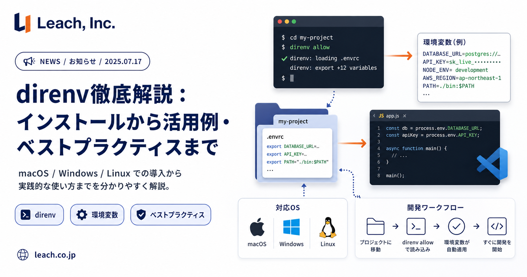 以上のように、direnvは開発者の環境変数管理をシンプルかつ強力にしてくれるツールです。それでは具体的な導入方法から見ていきましょう。