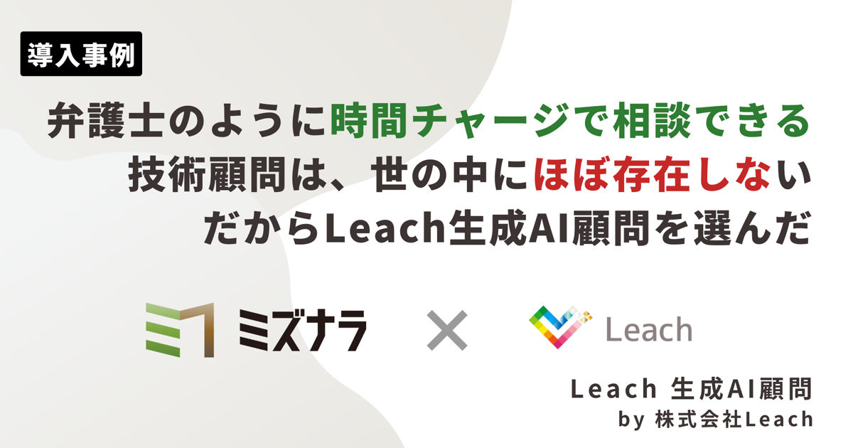 本事例でご活用いただいたサービスについて詳しくはLeach 生成AI顧問をご覧ください。