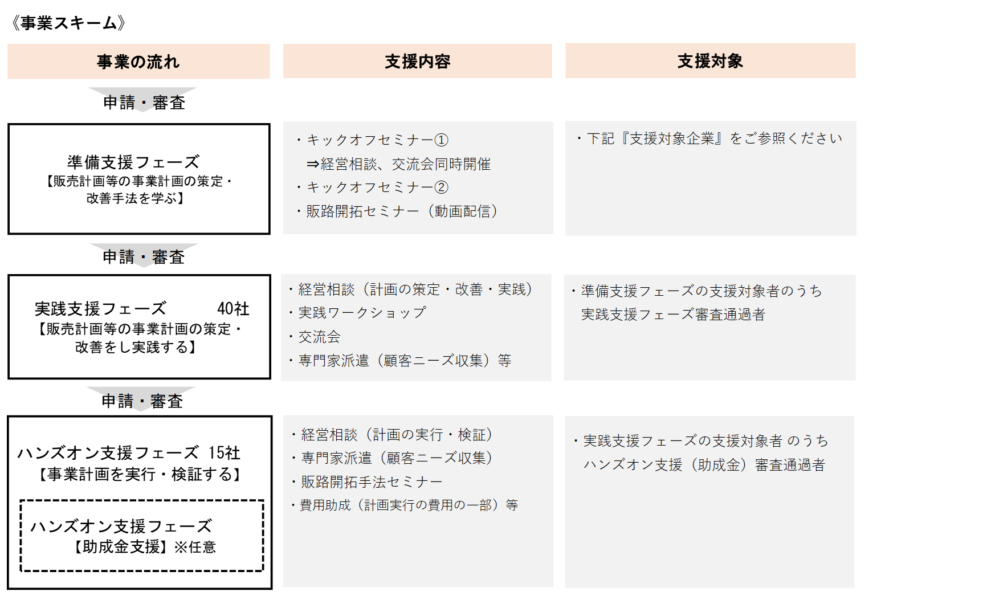 - 専門家派遣:経営・法務・販路開拓等の個別論点への実務支援