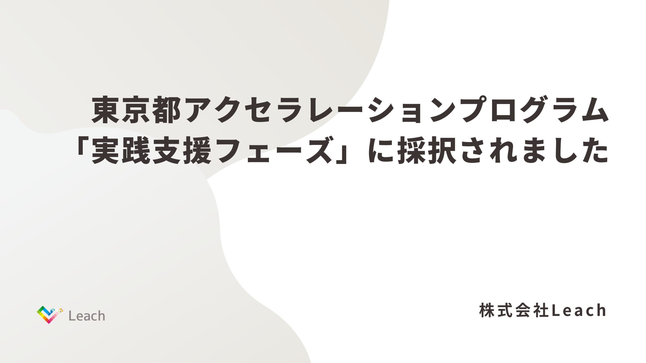 株式会社Leach(本社:東京都港区、代表取締役:冨永 拓也、以下「Leach」)は、公益財団法人東京都中小企業振興公社が運営するアクセラレーションプログラムの実践支援フェーズに、上位40社の一社として採択されたことをお知らせします。